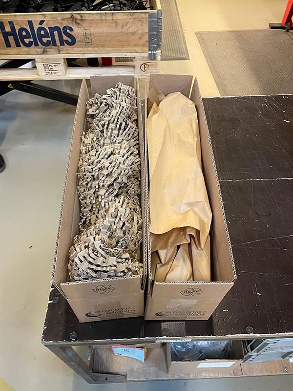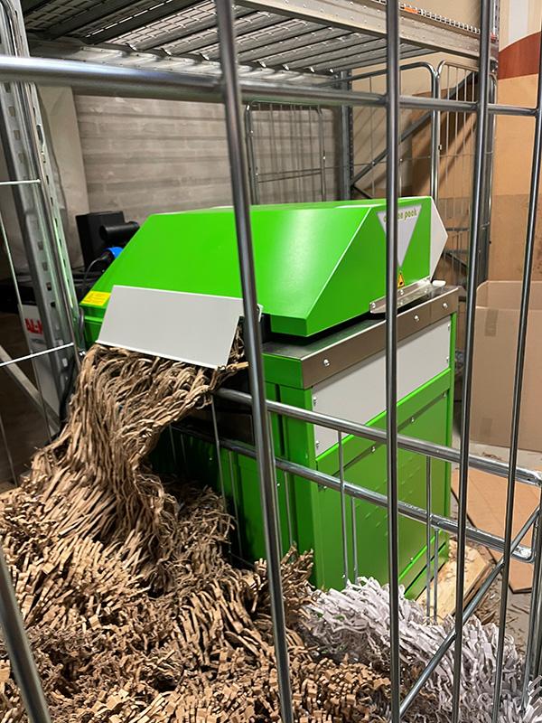 In November 2021, we introduced a shredder machine that allows us to reuse incoming cardboard as packing material within our packing process.